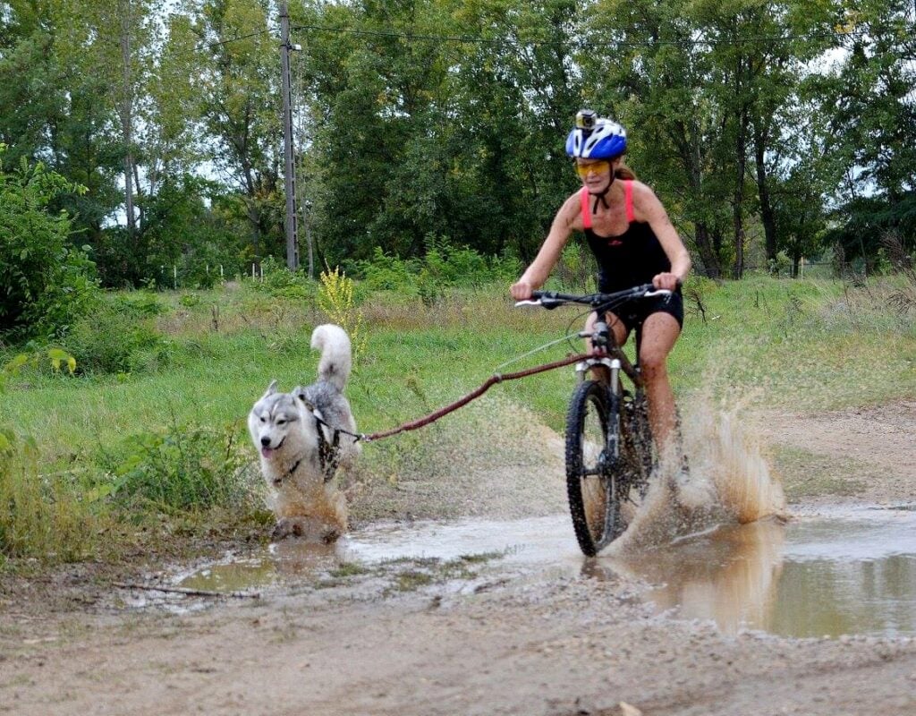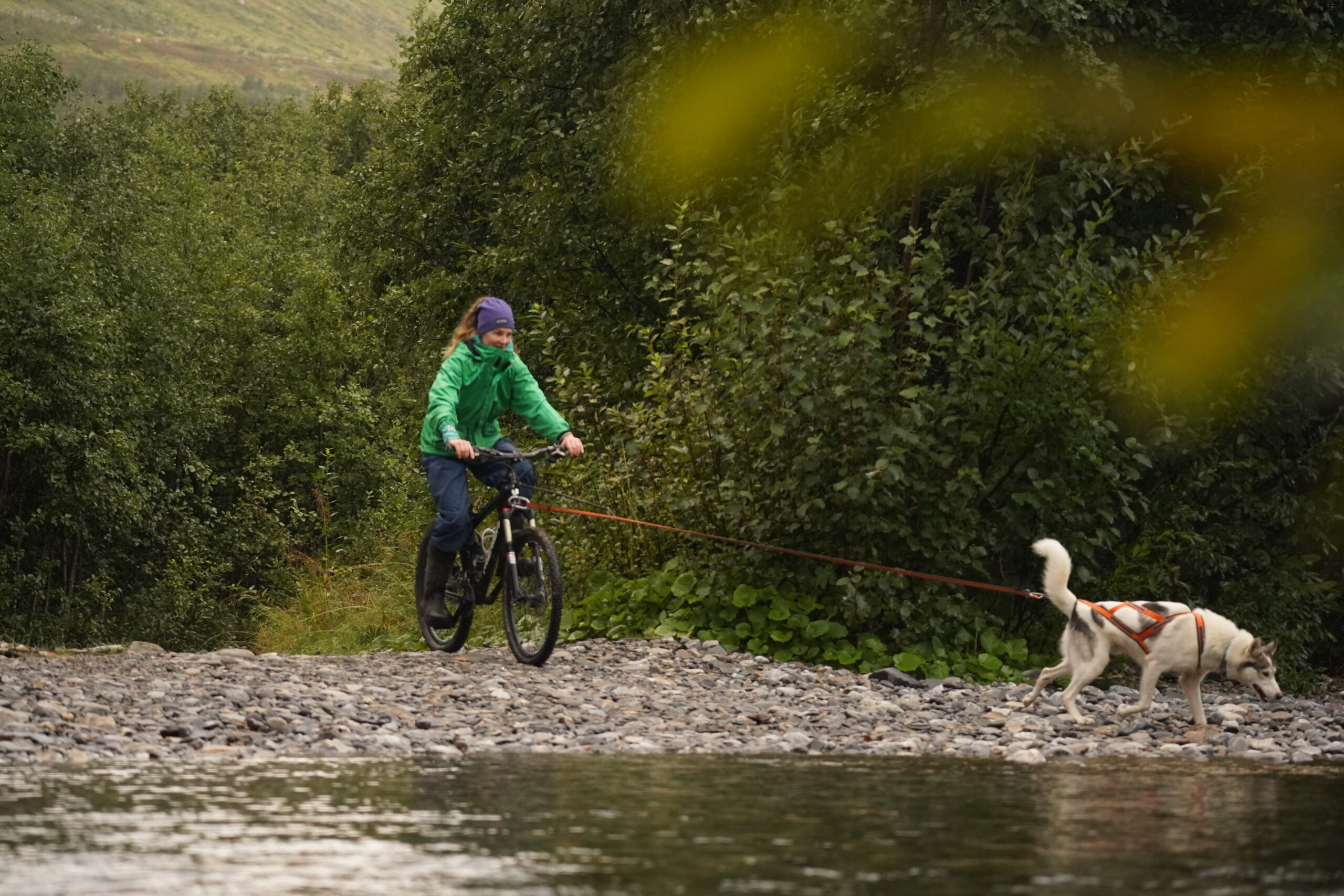 Bikejöringtour (auf dem Fahrrad vom Husky ziehen lassen)