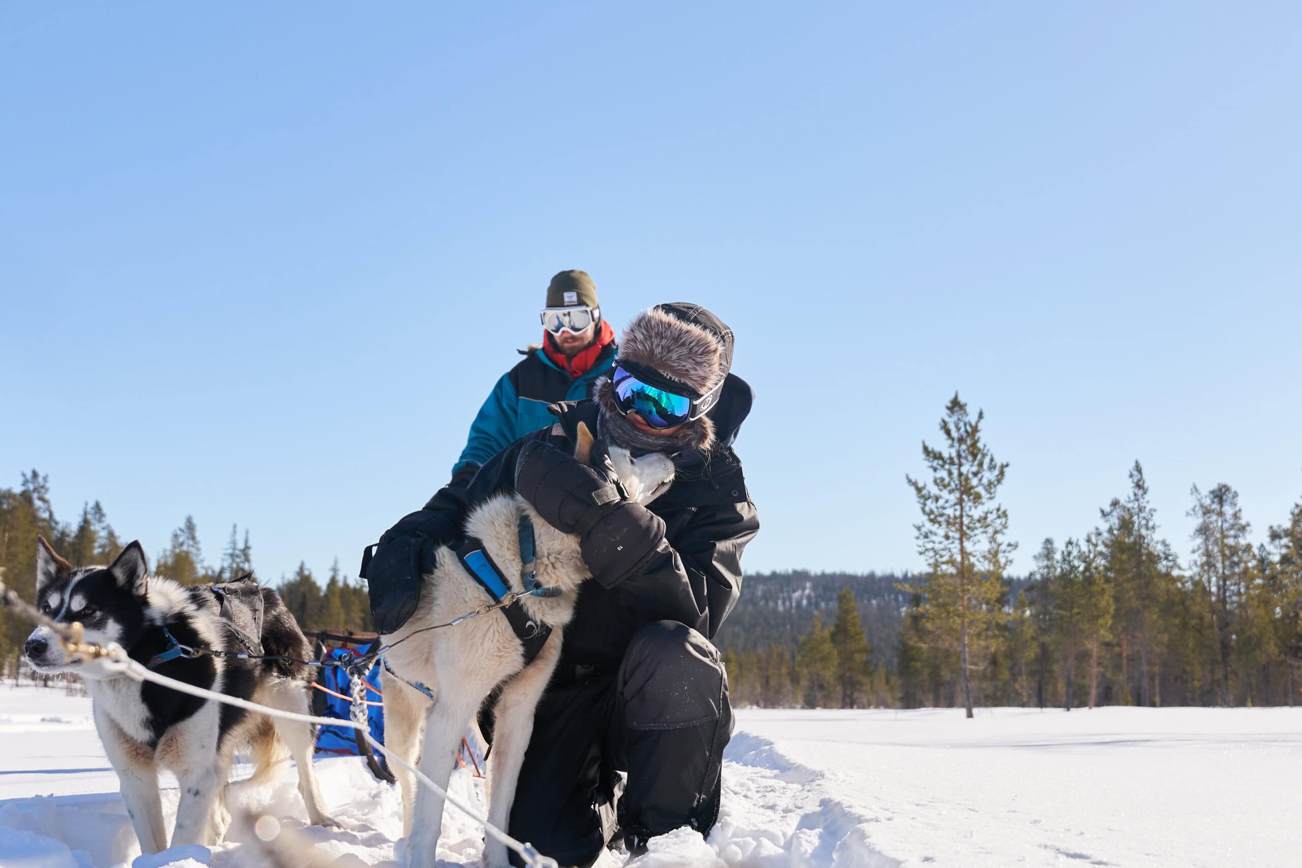 • Inklusive: Anziehen der Winterkleidung, Vorbereiten der Hunde, Transport zum/vom Startpunkt ab der Husky-Farm, geführte Schlittenfahrt von ca. 12 km, Pause am Lagerfeuer mit Heißgetränken und Snacks