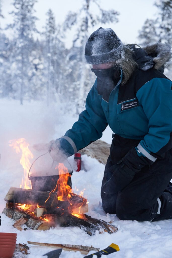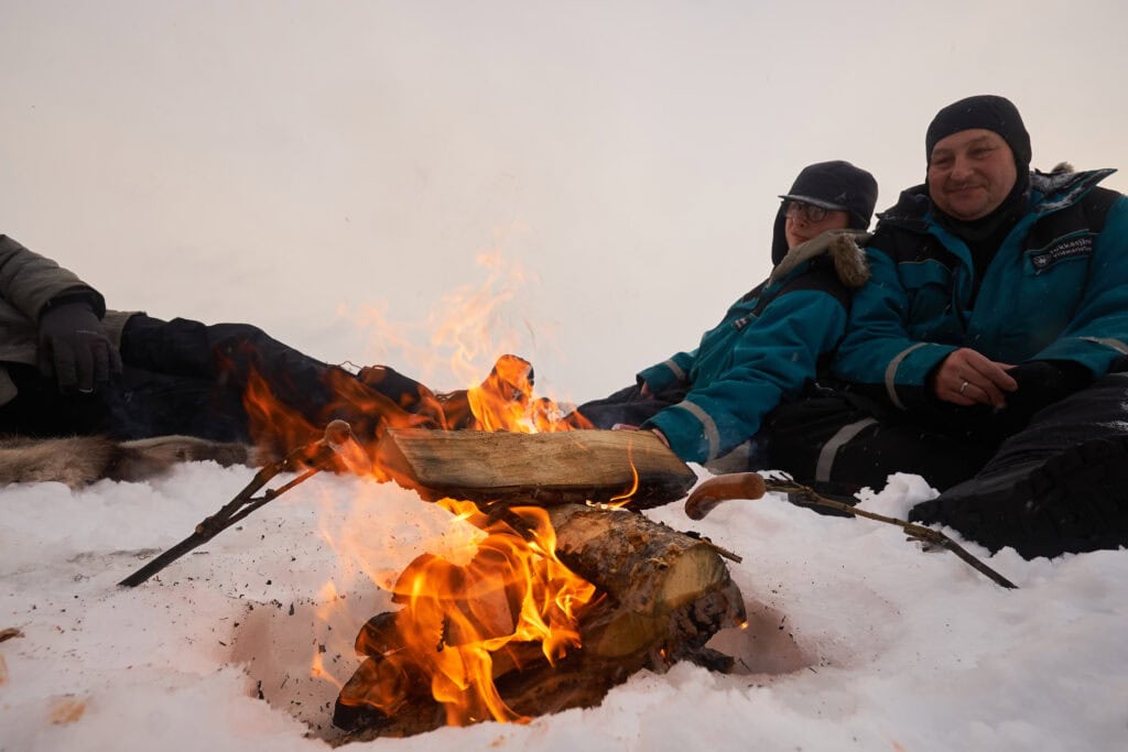 Am nächsten Tag fahren wir mit den Hunden zurück zum Basiscamp. Dort angekommen, spannen wir die Hunde aus und bereiten uns ein leckeres Abendessen zu. Bei einem wärmenden Kamin oder Lagerfeuer genießen wir den letzten Abend zusammen, bevor wir euch am nächsten Morgen zurück zum Flughafen bringen.