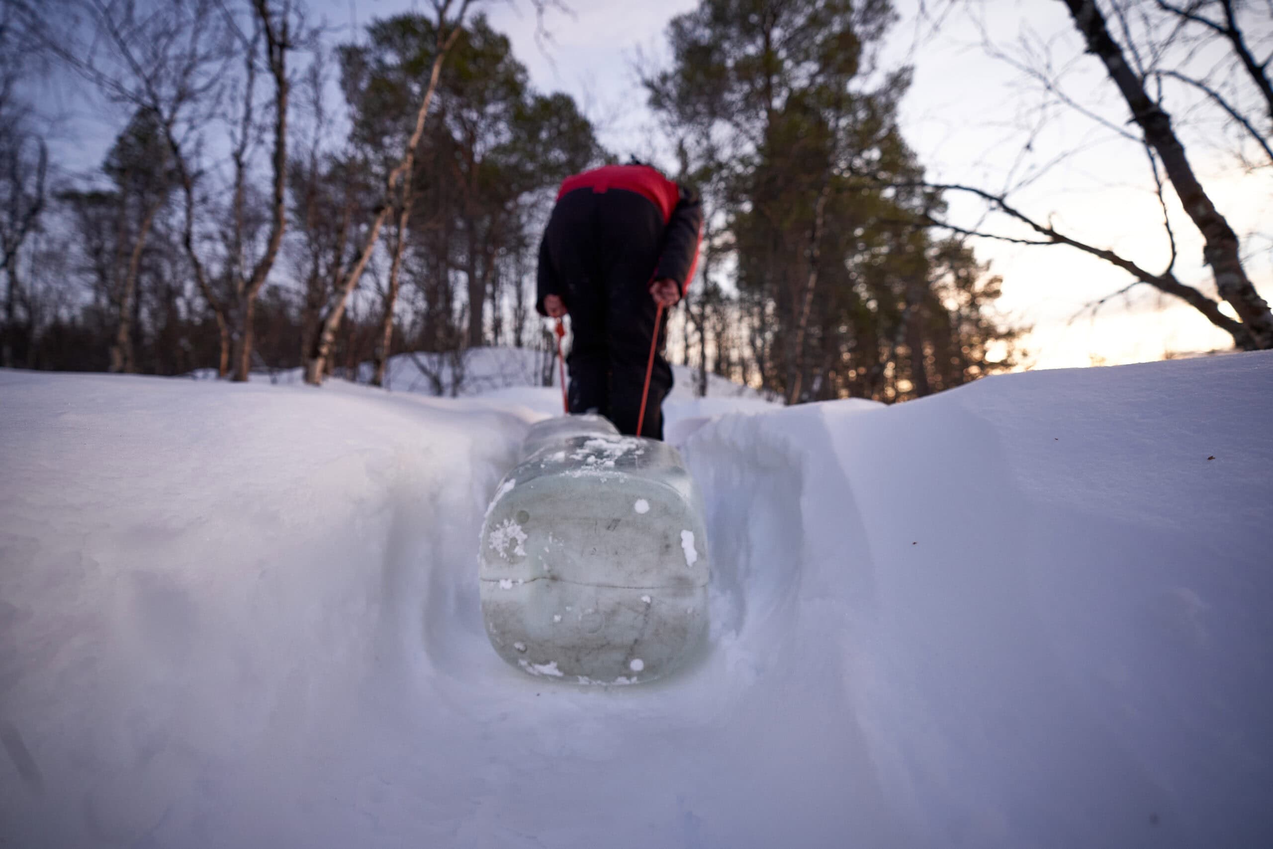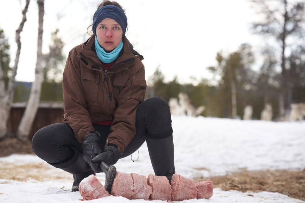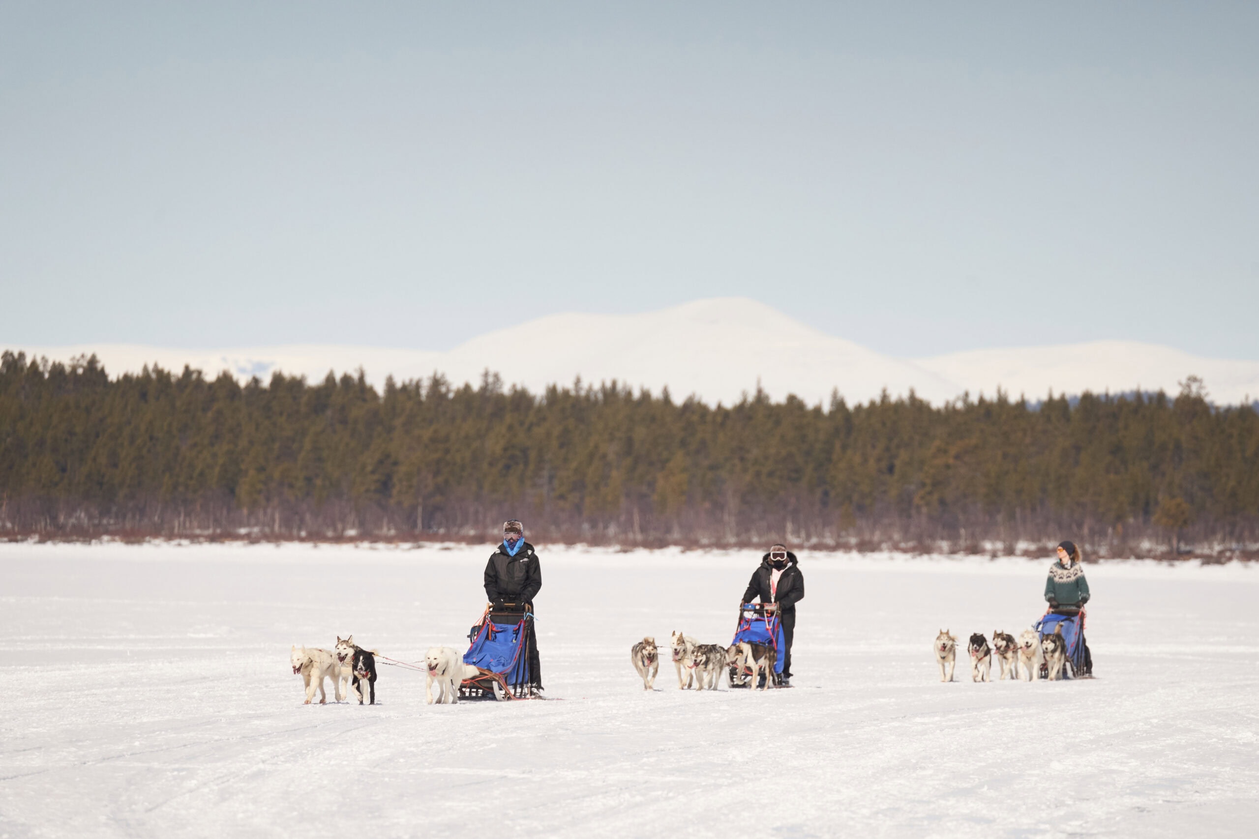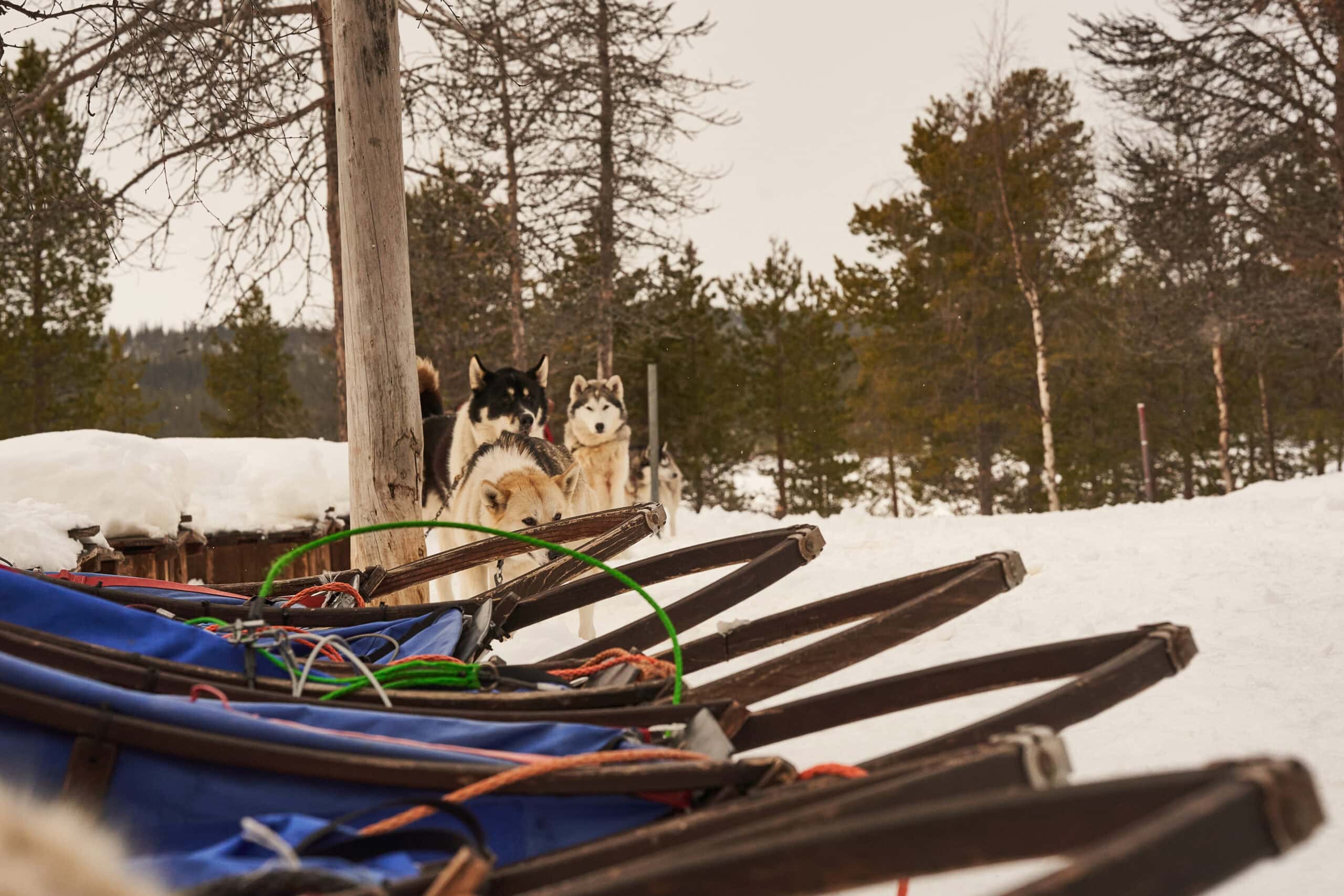 Am nächsten Morgen verladen wir die Hunde und unsere Ausrüstung und es geht endlich los. Wir fahren in den Reisa Nationalpark. Wir spannen unsere Hunde vor die Schlitten und auf geht’s ins Abenteuer. Am ersten Tag fahren wir immer tiefer in den Nationalpark hinein und finden unseren Platz an einer der einzigartigen Hütten.