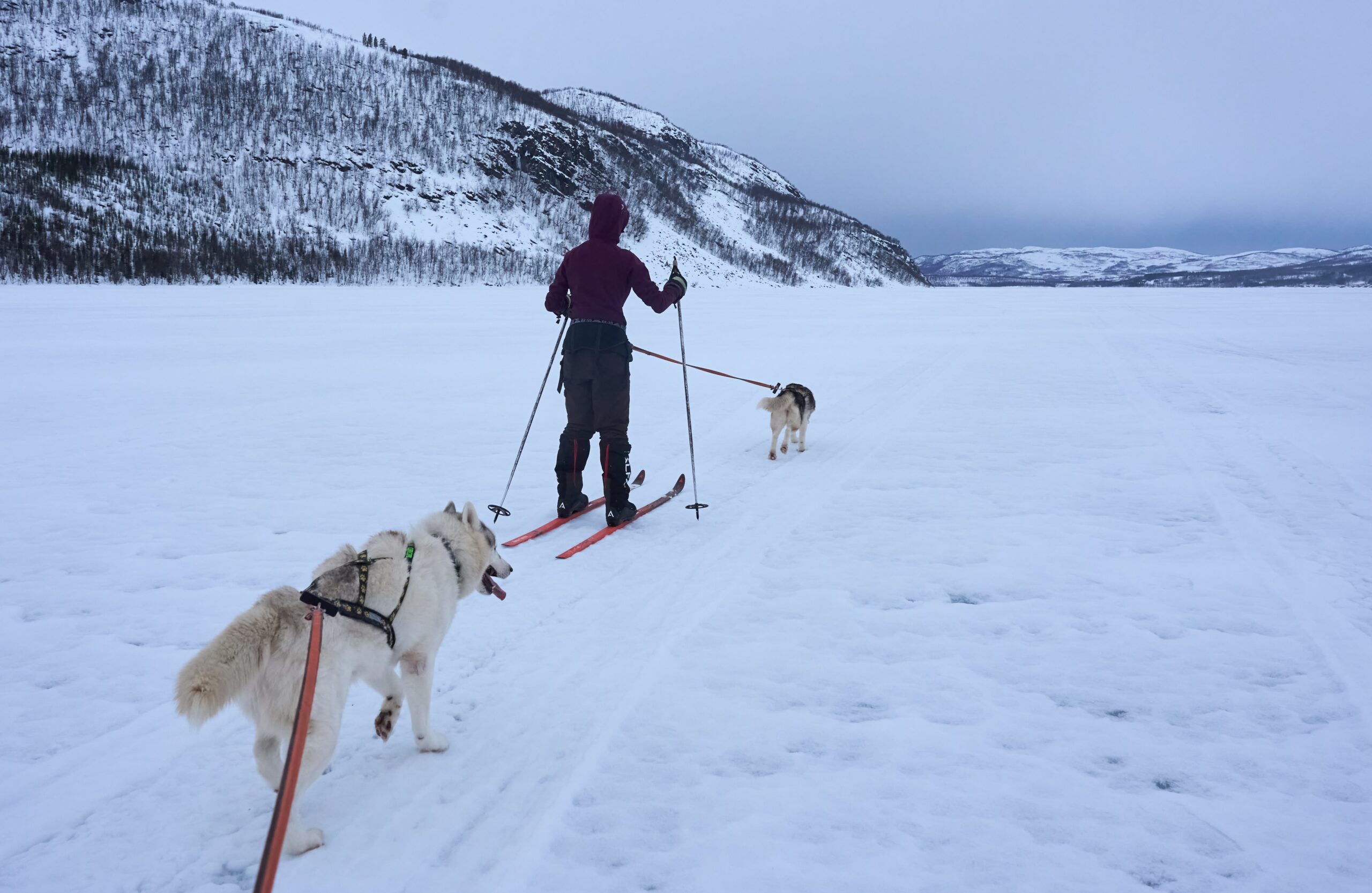 Langlaufen mit Huskys in einem wunderschönen Tal des norwegischen Lapplands - ein echtes arktisches Muss!